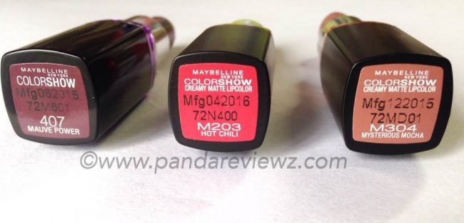 These lipsticks stay for a good 4 hours on and also without drying up my lips. After that the creamy sheen starts to fade away, Mauve Power and Hot Chilli being the dark shades and much pigmented than Mysterious Mocha, leave a strong stain which lasts for 2-3 hours.